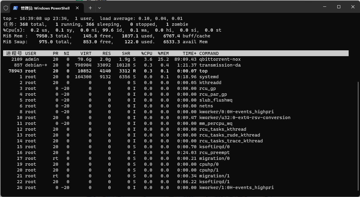 MiB Swap表示交换空间,或者可以理解为windows的虚拟内存。