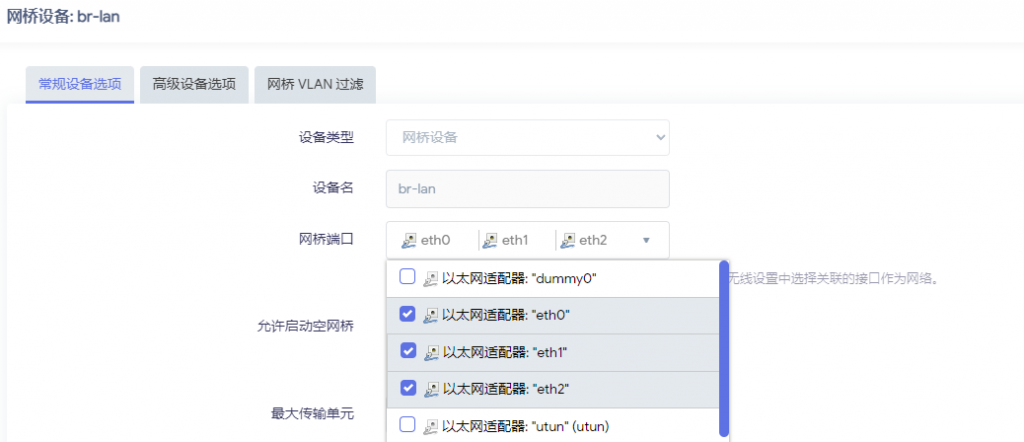 将需要的网口打勾,保存并应用,如果有修改MTU的需求自行修改