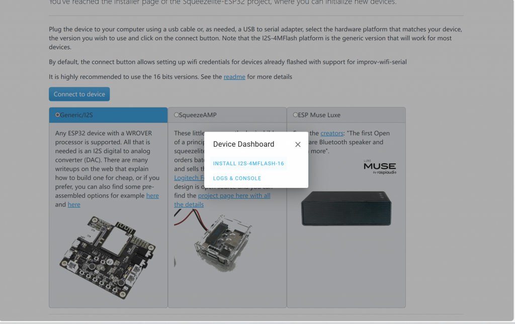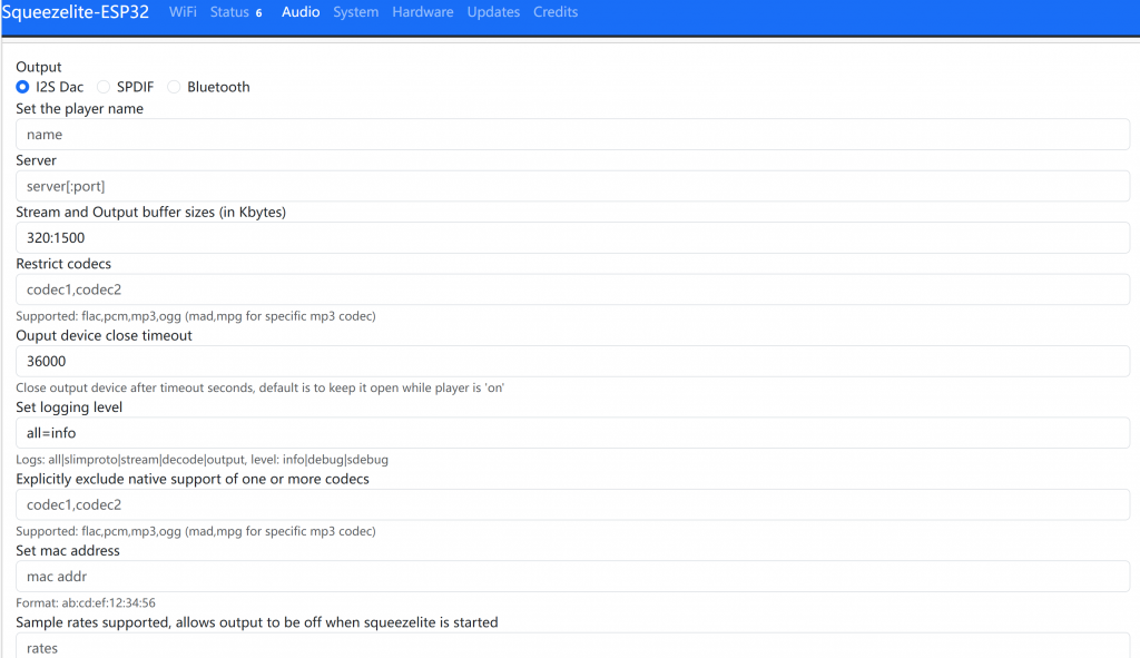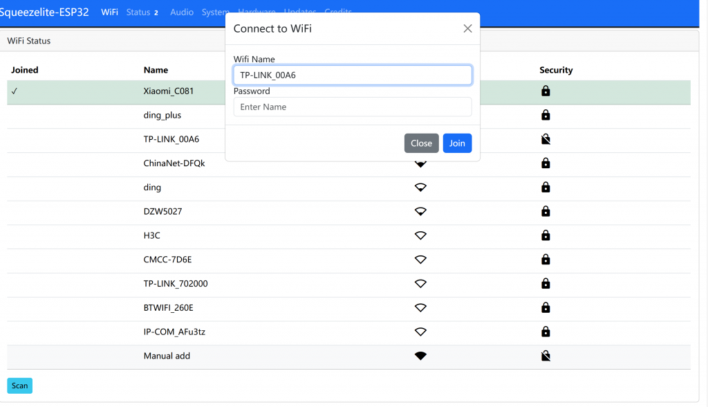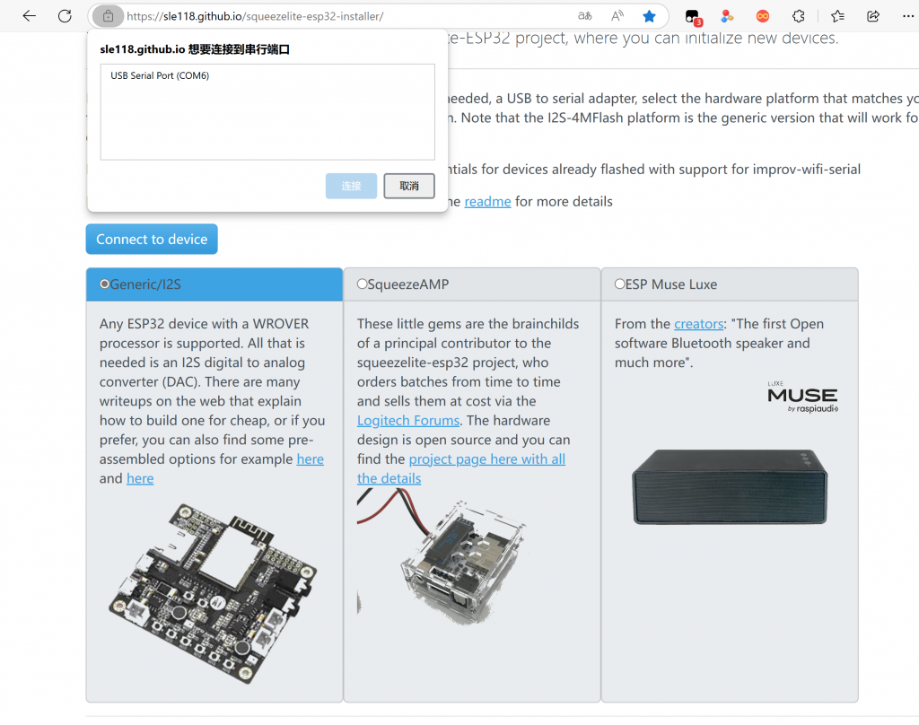 当刷入之后,esp32将会自动的打开开启一个wifi热点,WiFi的ssid以squeezelite开头的,密码是squeezelite,连接之后打开浏览器,输入192.168.4.1即可在网页端配置。