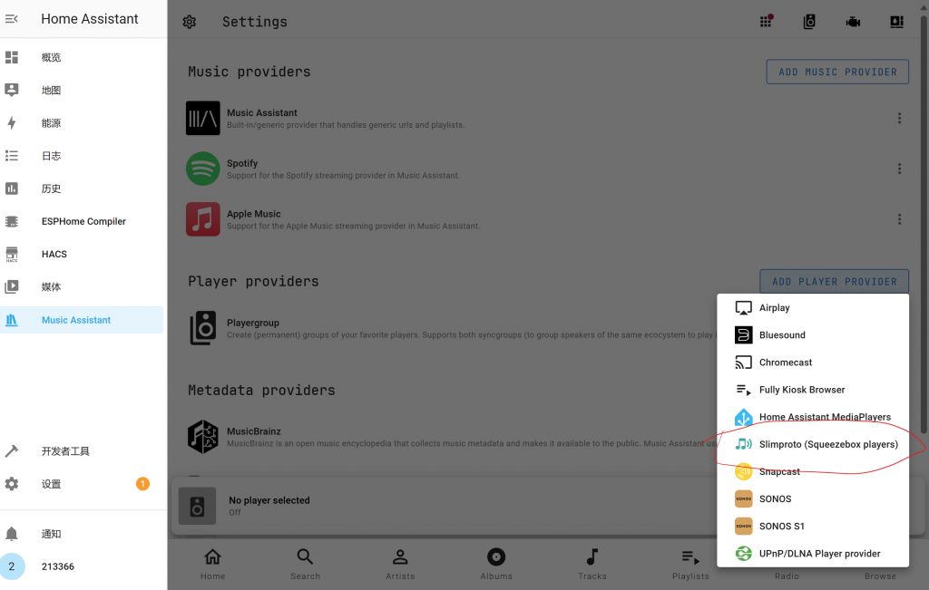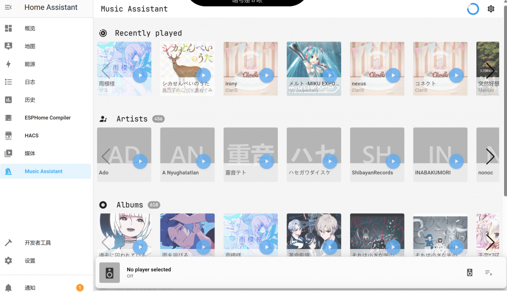 这是因为最近Musicassitant算是正式接入Homeassistant了,而在我看来Musicassistant算是我这个同时使用spotify和本地音乐库的人的一个好选择,也可以通过自动化来实现全屋音乐和人到哪个房间哪个房间播放音乐的效果。