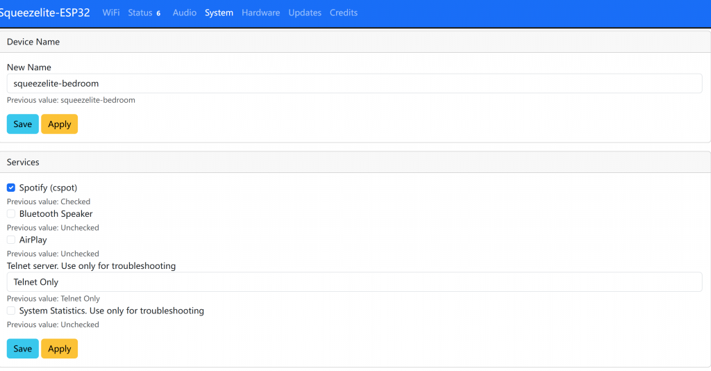 System界面没有什么好说的,推荐关掉些用不到的功能,体感上可以降低模块超时的概率。在这个界面还可以设定Spotify connect的音质,推荐保持默认即可。通过Spotify connect播放音乐未发现音乐突然中断的情况。