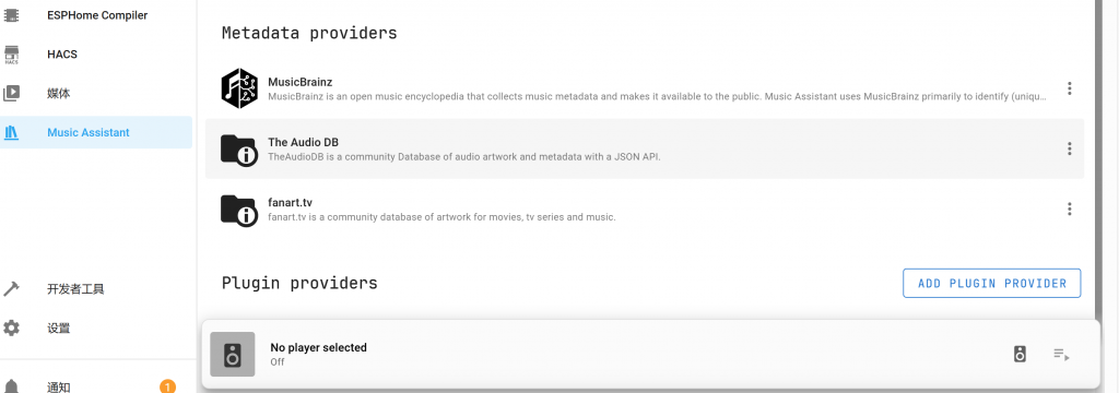 设置界面翻到底部,点击ADD PLUGIN PROVIDER,选择Home assistant