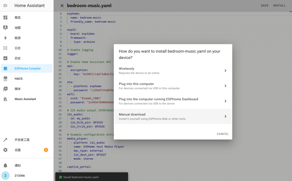 总体来说我更推荐使用方案一,因为不知为何music assitant和我的esp32连接不稳定,但spotify connect的连接很稳定,可以作为一个替代方案使用。