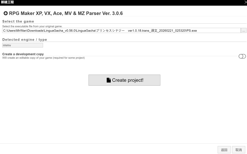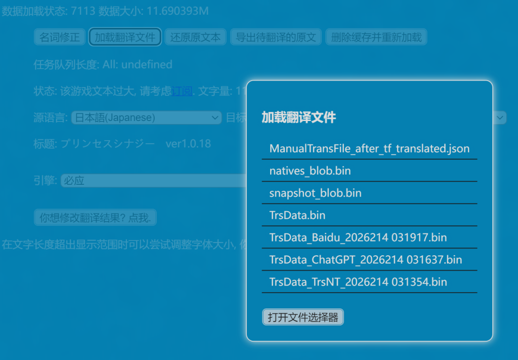在游戏从linguagacha翻译完成后,会导出一个trans文件,这次我们选择打开工程