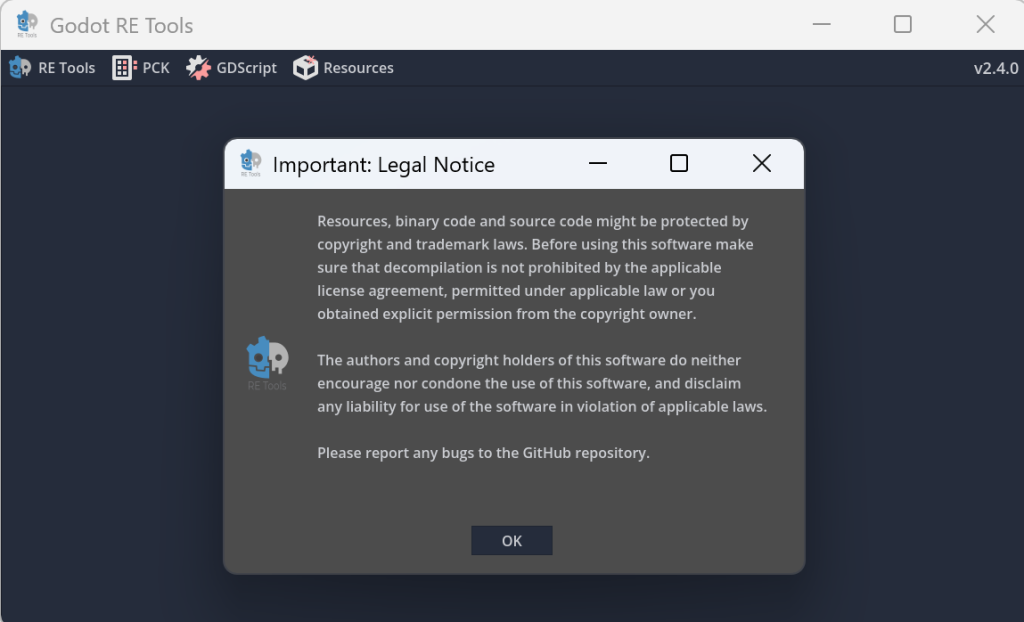 依旧是对游戏的解包,我们需要GDRETools/gdsdecomp: Godot reverse engineering tools这个工具来对游戏进行解包,但偶尔还是会看到作者真的做了加密,那种情况下就没有办法了,建议用外挂式的翻译。