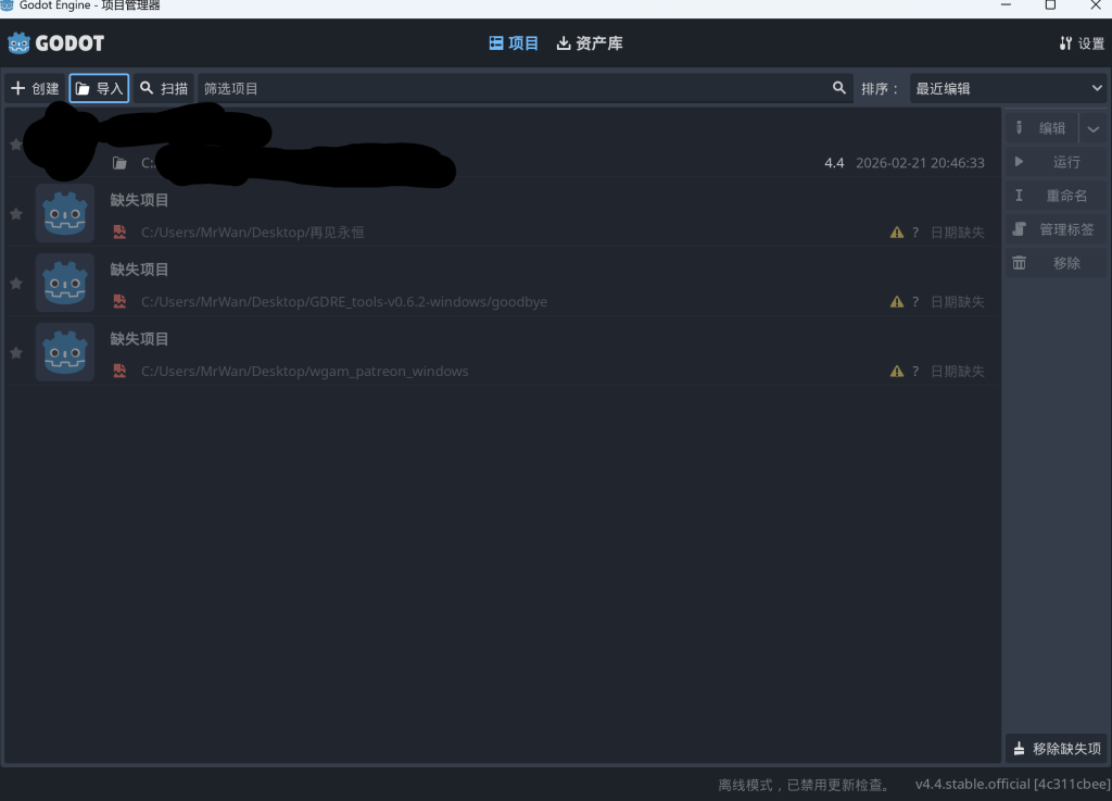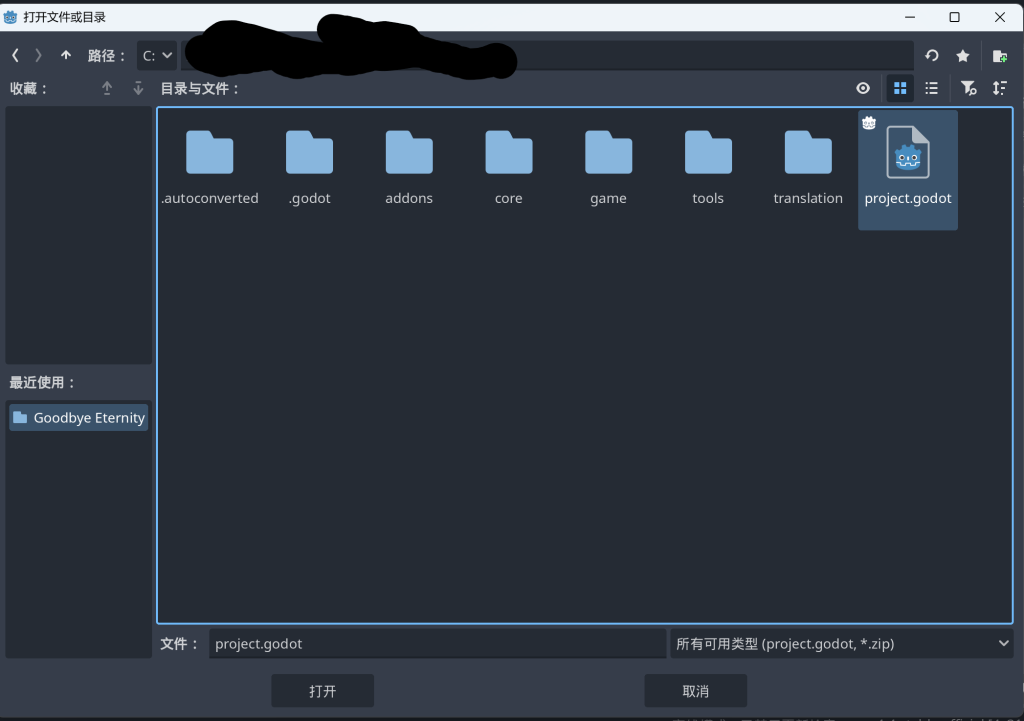 点击导入——选中解包出来的文件夹——找到project.godot——点击打开