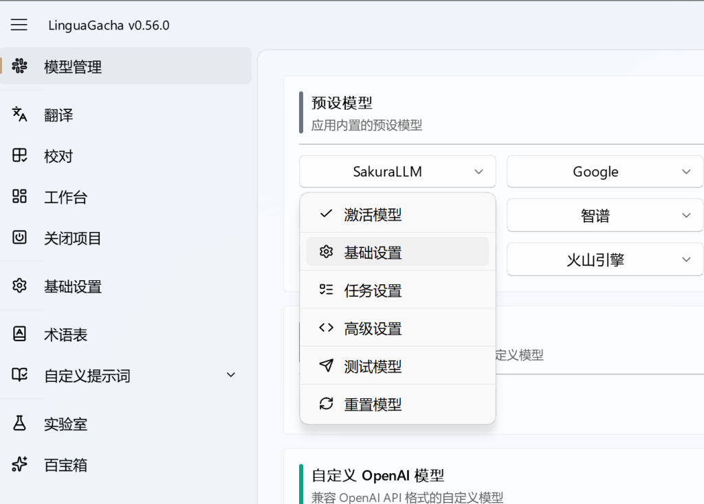 回到LinguaGacha,选择模型管理——deepseek——基础设置
