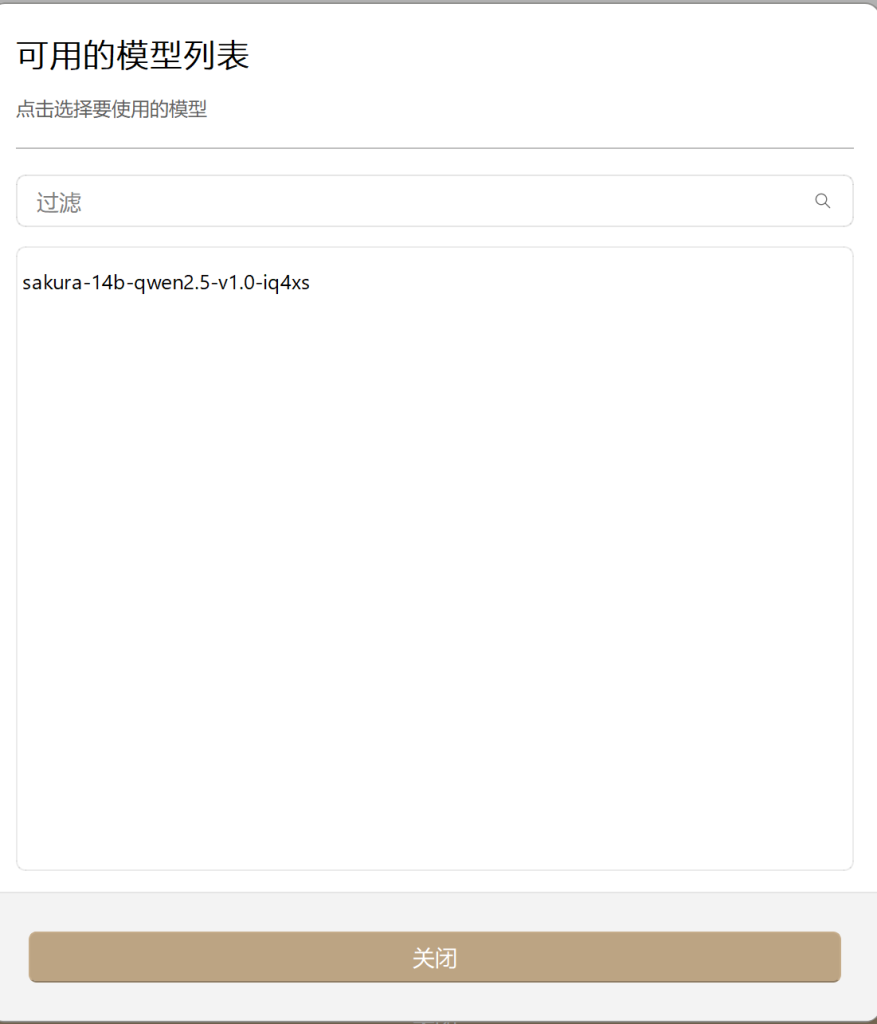 模型的下载地址是SakuraLLM (SakuraLLM),这里放上国内镜像站的地址,请自行挑选适合自己机器的版本。